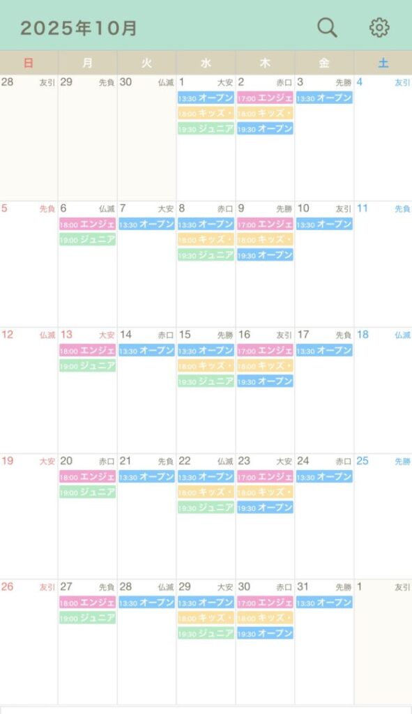 さて、10月のスケジュールですが、休講はございません。