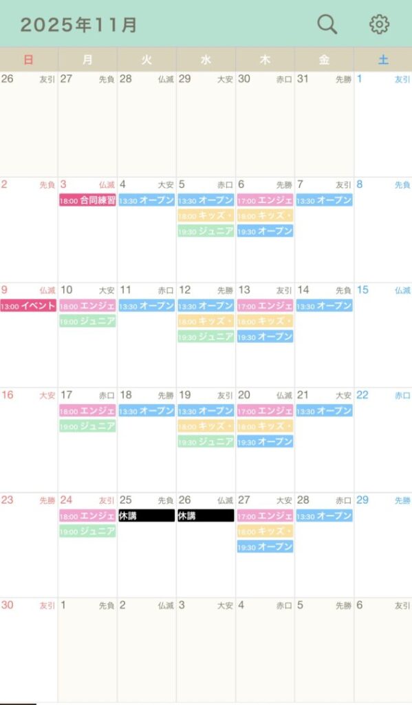11月25日(火) 全クラス休講 → 9月30日(火)振替レッスン済み