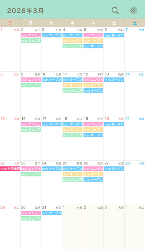 3月のスケジュール、休講はございません。